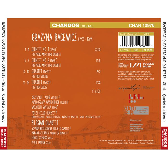巴采維琪 鋼琴五重奏 小提琴 大提琴四重奏 西利西亞四重奏 Bacewicz QuintetsCHAN10976