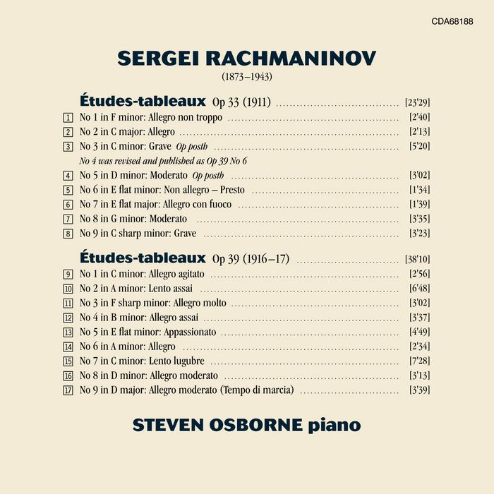 拉赫曼尼諾夫 音畫練習曲 史蒂芬奧斯朋 Steven Osborne Rachmaninov CDA68188