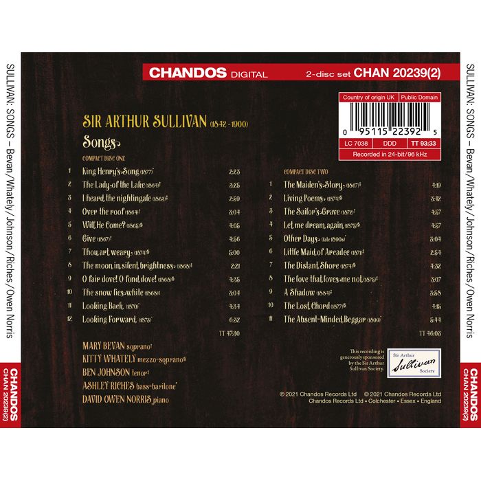 和諧的迴音 蘇利文爵士歌曲集 貝文 Bevan The Harmonious Echo CHAN20239