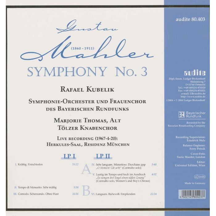 黑膠 馬勒 第三號交響曲 庫貝利克 指揮 Mahler Symphony No 3 80403