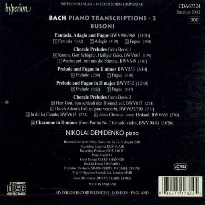 巴哈 鋼琴改編曲02 布梭尼 德米丹柯 Bach Transcriptions 2 by Busoni CDA67324