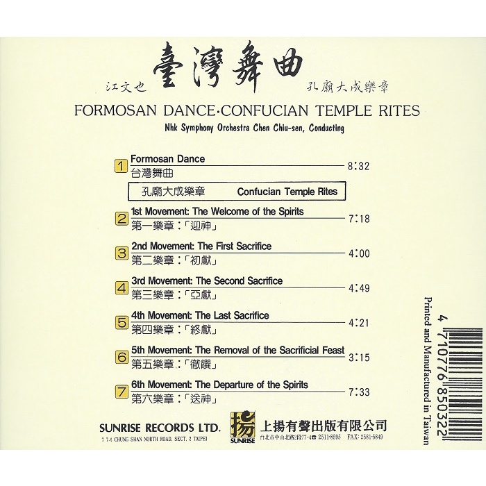 (黃金CD版) 江文也 臺灣舞曲 孔廟大成樂章 Formosan Dance 8503G