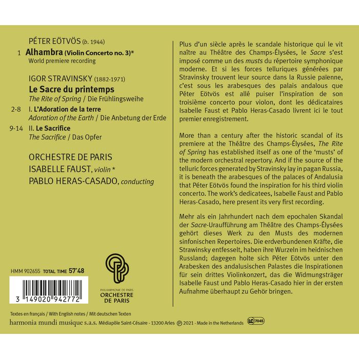 史特拉文斯基 春之祭 艾特沃許 小提琴協奏曲 佛斯特 Stravinsky Eotvos HMM902655
