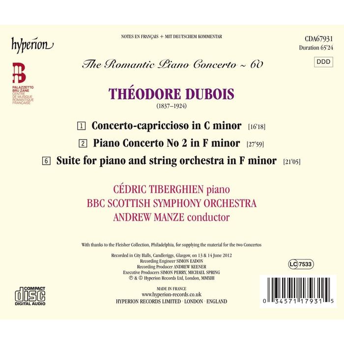 浪漫鋼琴協奏曲60 杜布瓦 提貝岡 Romantic Piano Tiberghien Dubois CDA67931