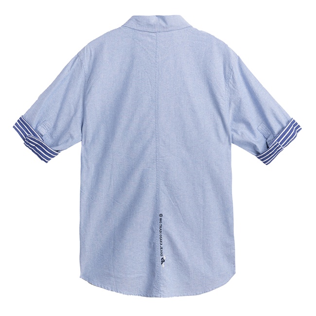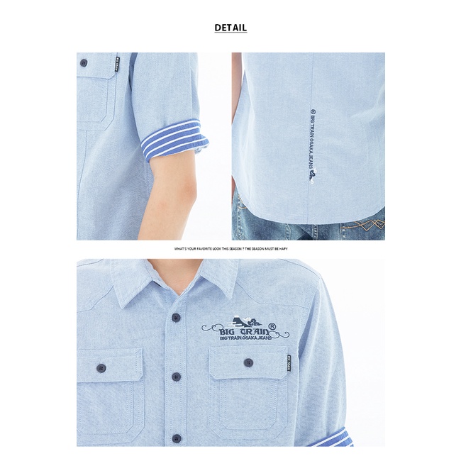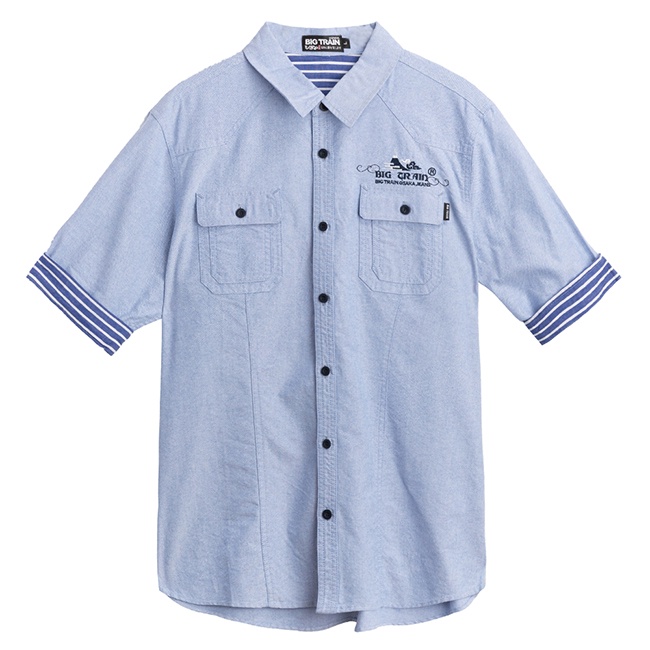 BIG TRAIN 素色牛津五分袖襯衫-淺藍B70116