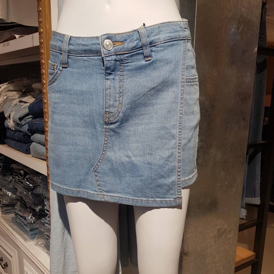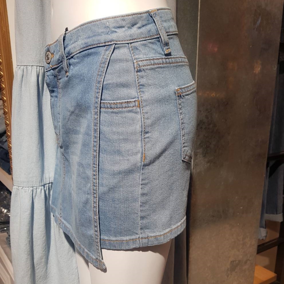 VICTORIA 中高腰天絲棉一片裙短褲 中藍 V55222