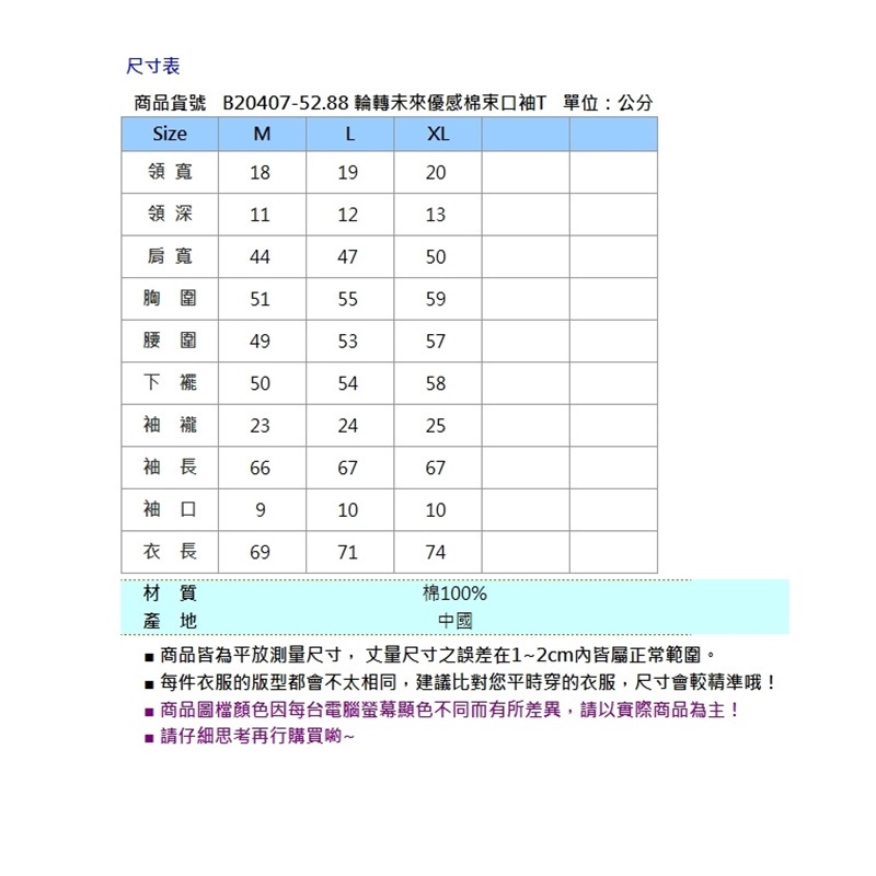 輪轉未來優感棉束口袖T-B20407