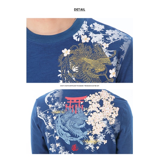BIG TRAIN加大鳳凰竹節棉修身男款 -藍-O20240-55
