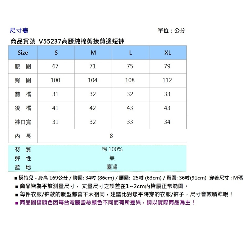 VICTORIA 高腰純棉剪接剪邊短褲 V55237-73