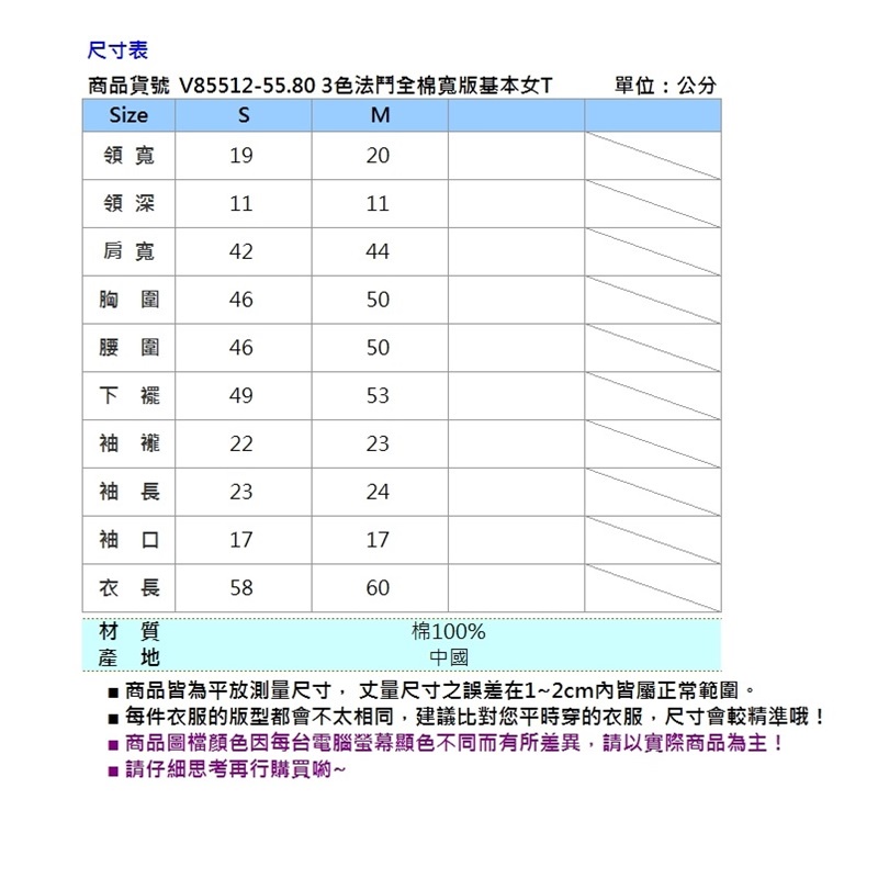 VICTORIA3色法鬥全棉寬版基本女T -V85512-55