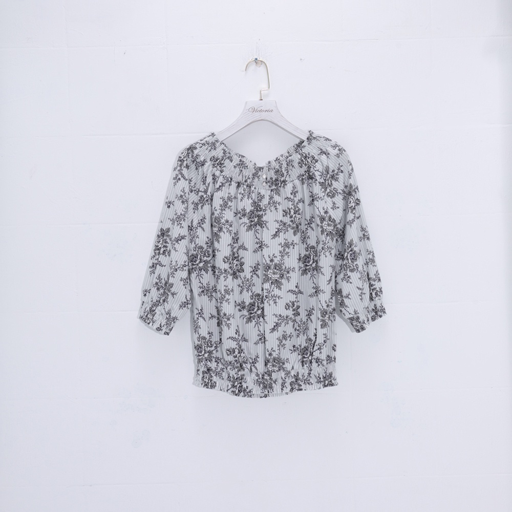 VICTORIA一字領後綁結公主袖襯衫-V75097-83