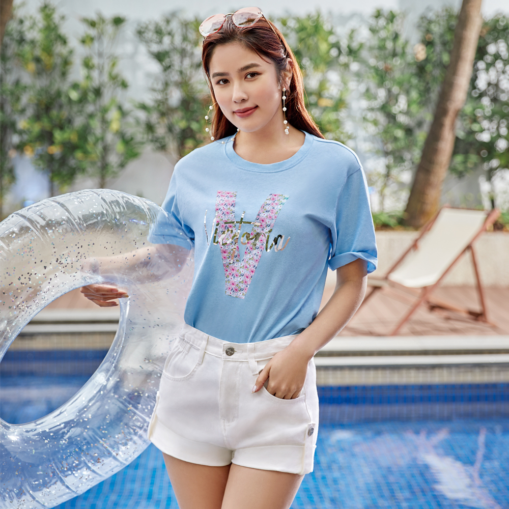 VICTORIA 高腰花苞縮腰捲口短褲 V55234-80