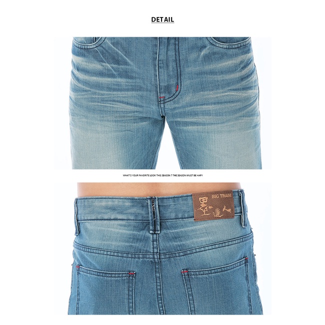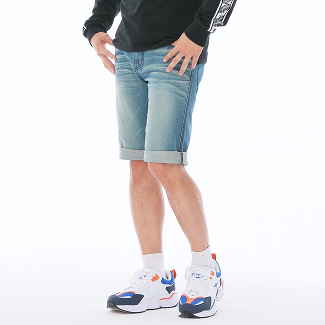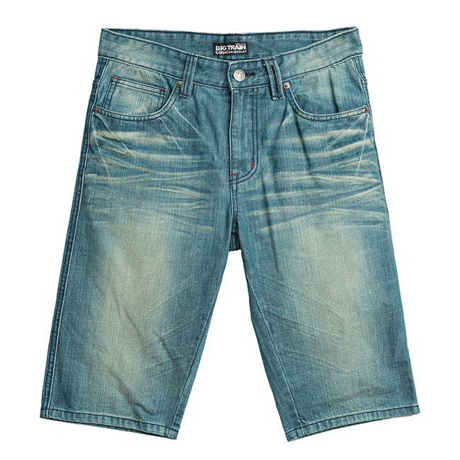 BIG TRAIN 墨達人純棉重水洗牛仔短褲-中藍Z50007