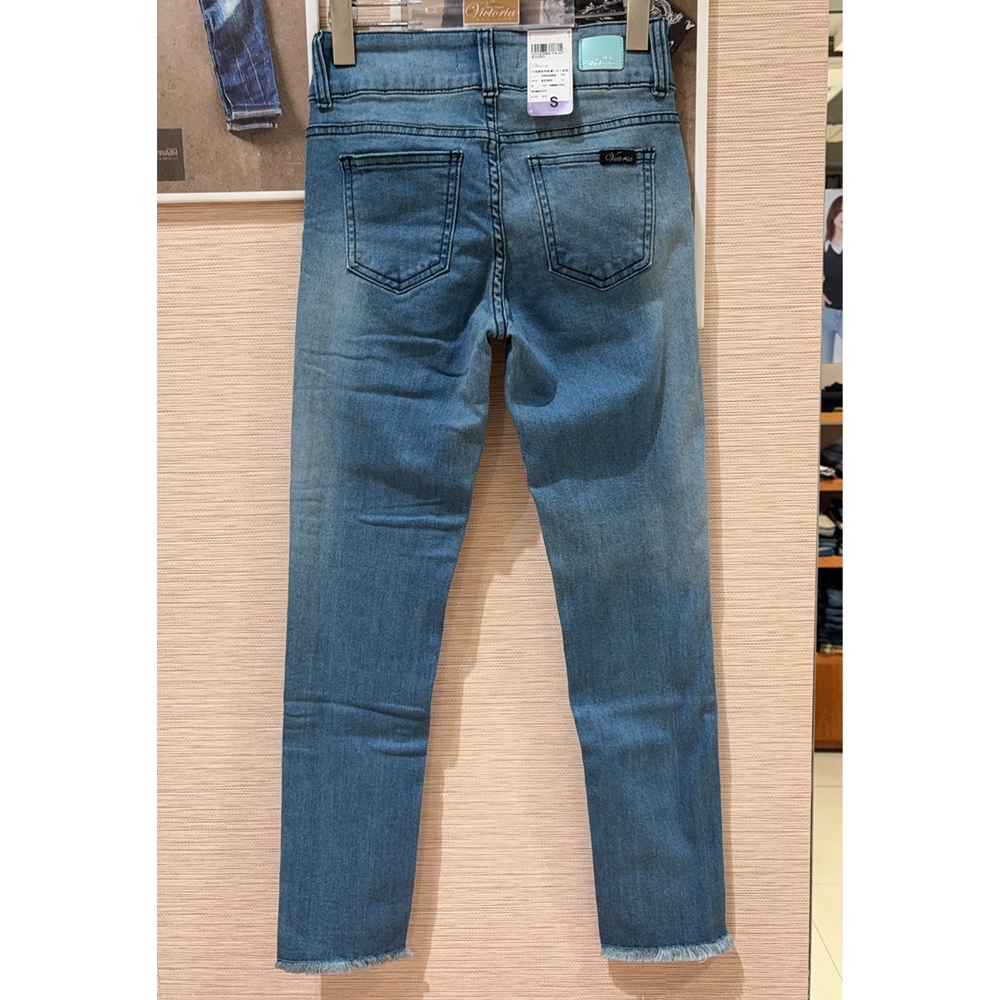 VICTORIA 中高腰斜角鬚邊九分小直筒 中藍VW2366-74