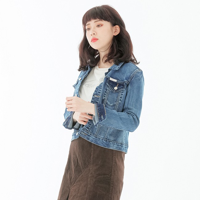 VICTORIA 熱氣球繡花彈性牛仔外套-藍V35158