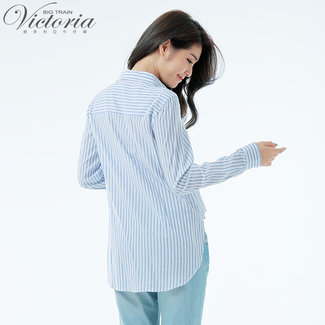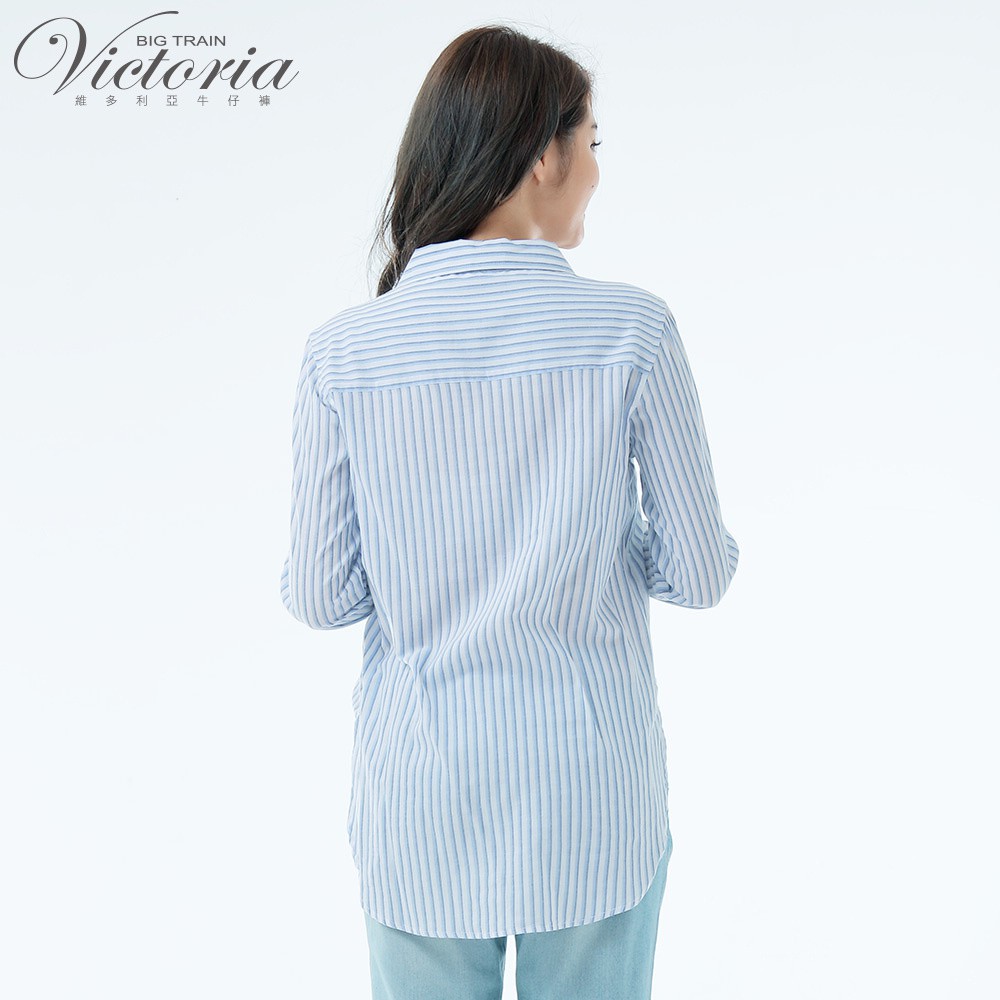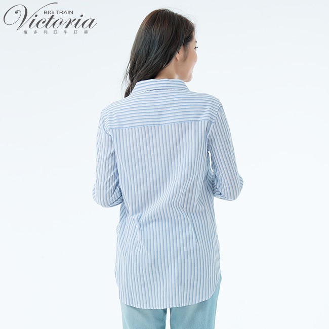 VICTORIA 休閒中長版襯衫-白底藍直條V75084