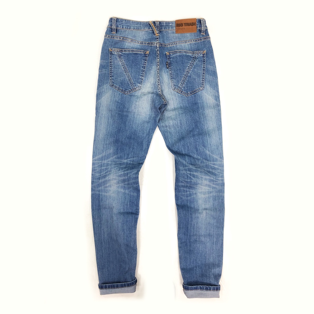BIG TRAIN 特彈割破水洗剪接小直筒 淺藍BM7298