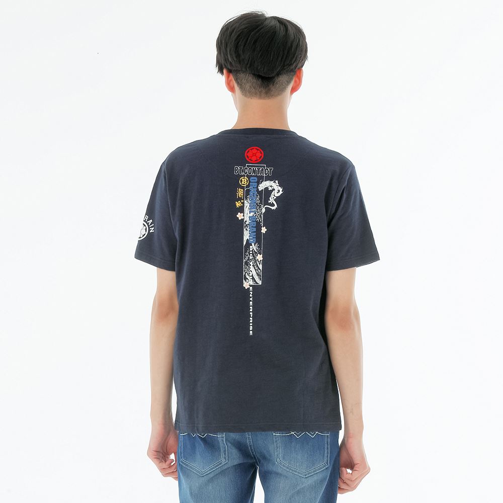 BIG TRAIN 躍川騰龍竹節棉寬潮T-藍Z80176