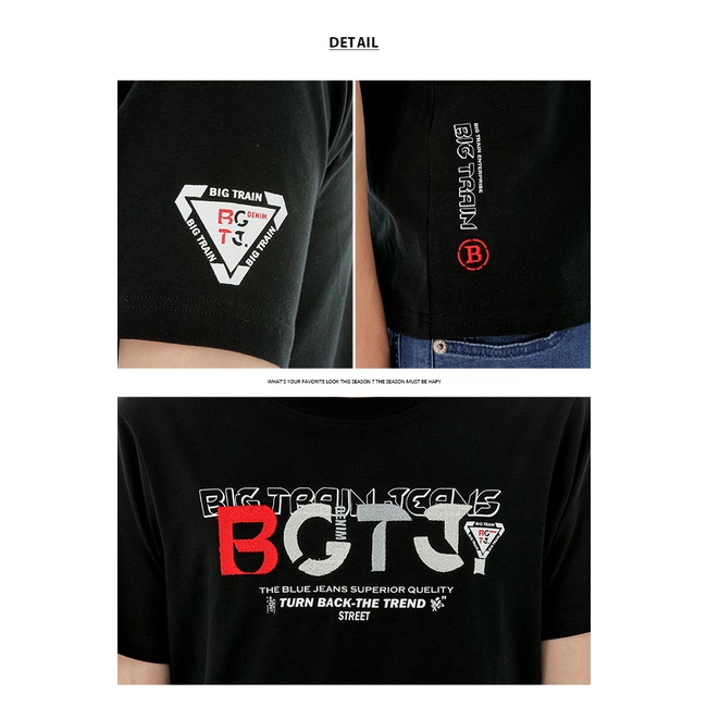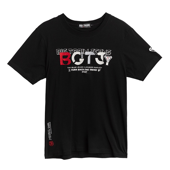 BIG TRAIN 潮轉繡字涼感彈性修身T-黑B80720