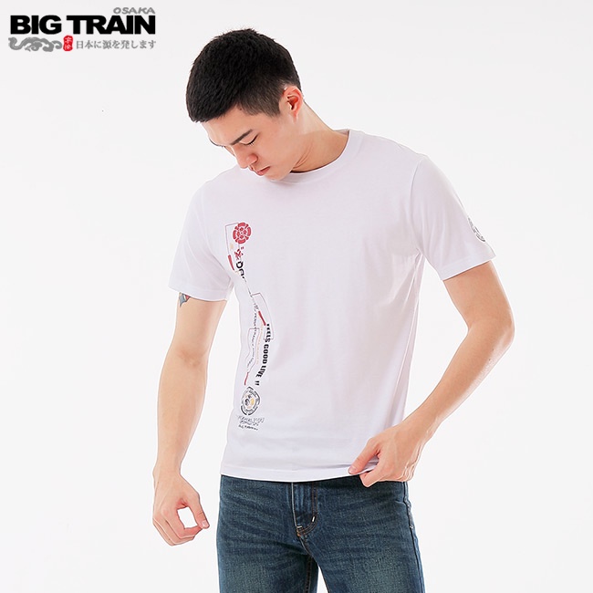 BIG TRAIN 翻轉潮流主題圓領T男款-白