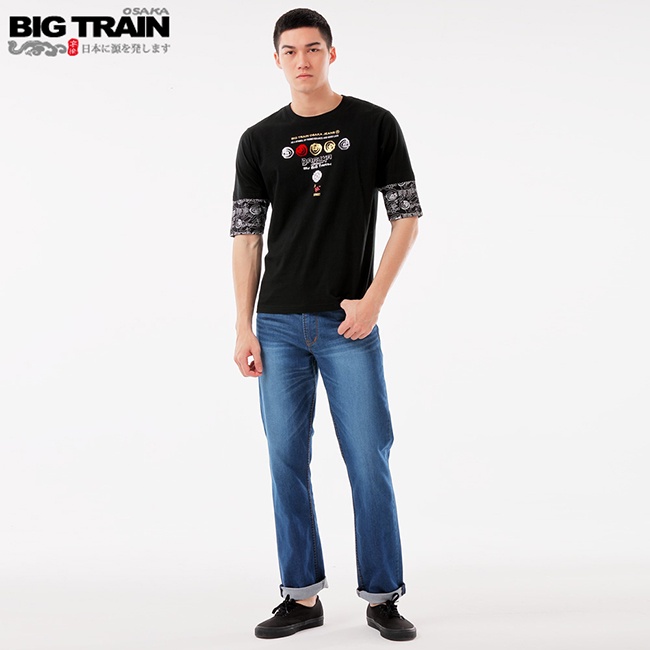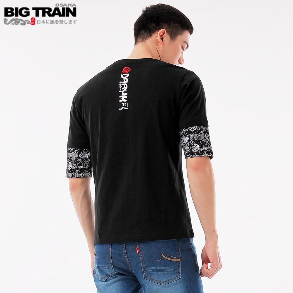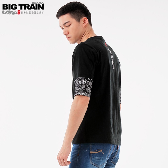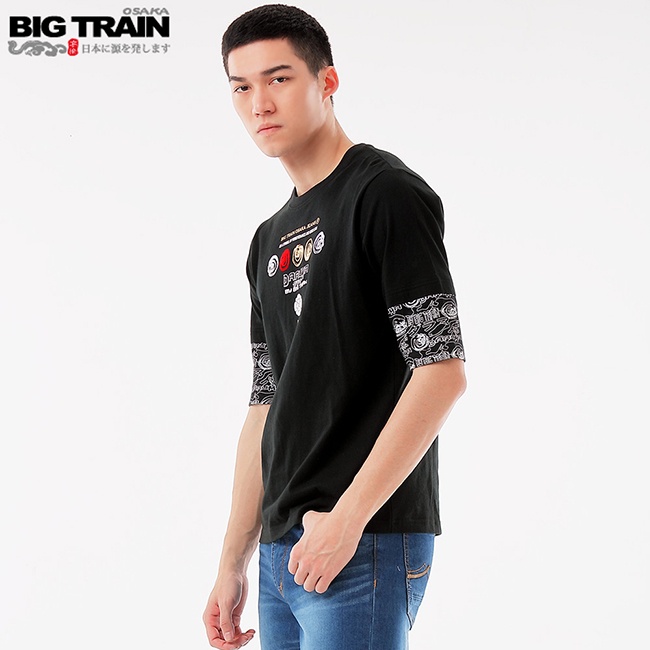 BIG TRAIN 翻轉潮流配色五分袖T-黑 B80693