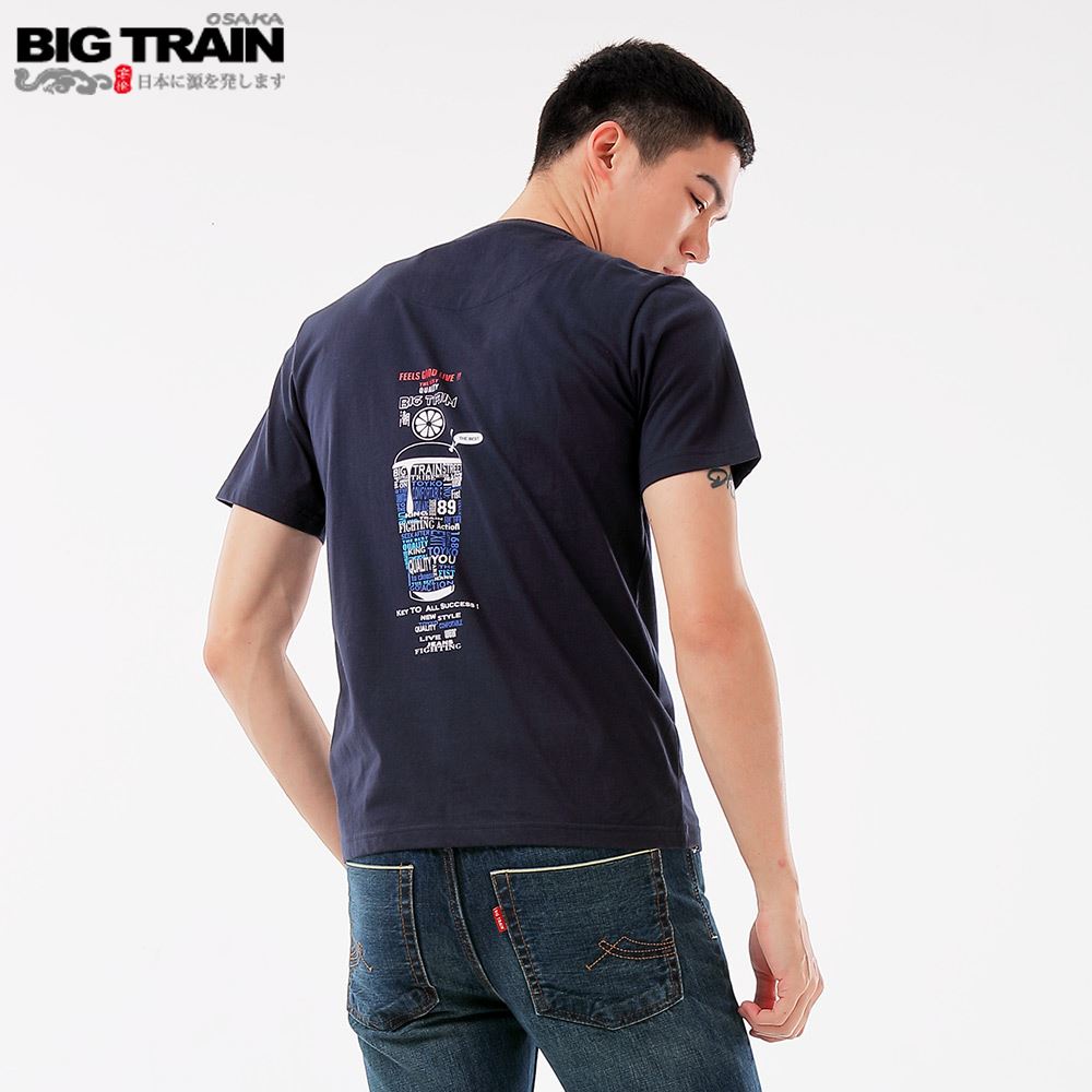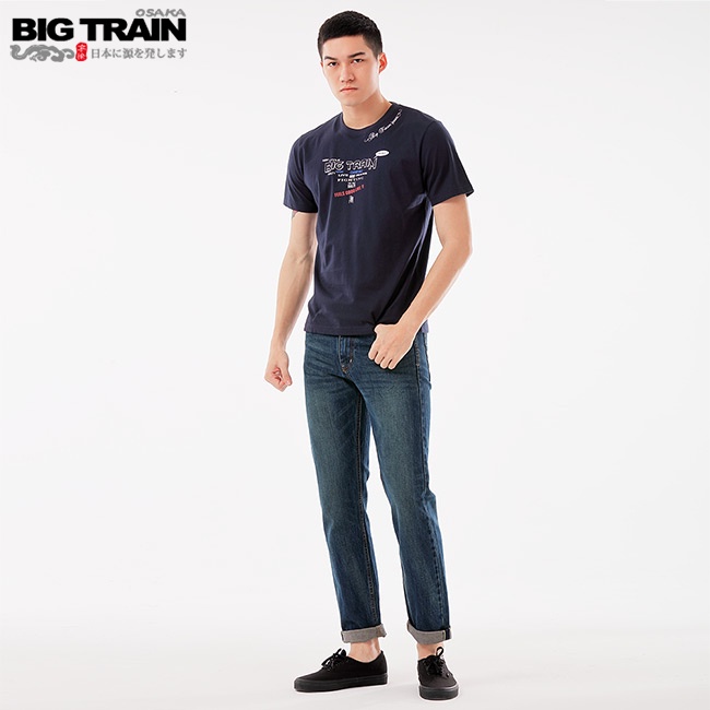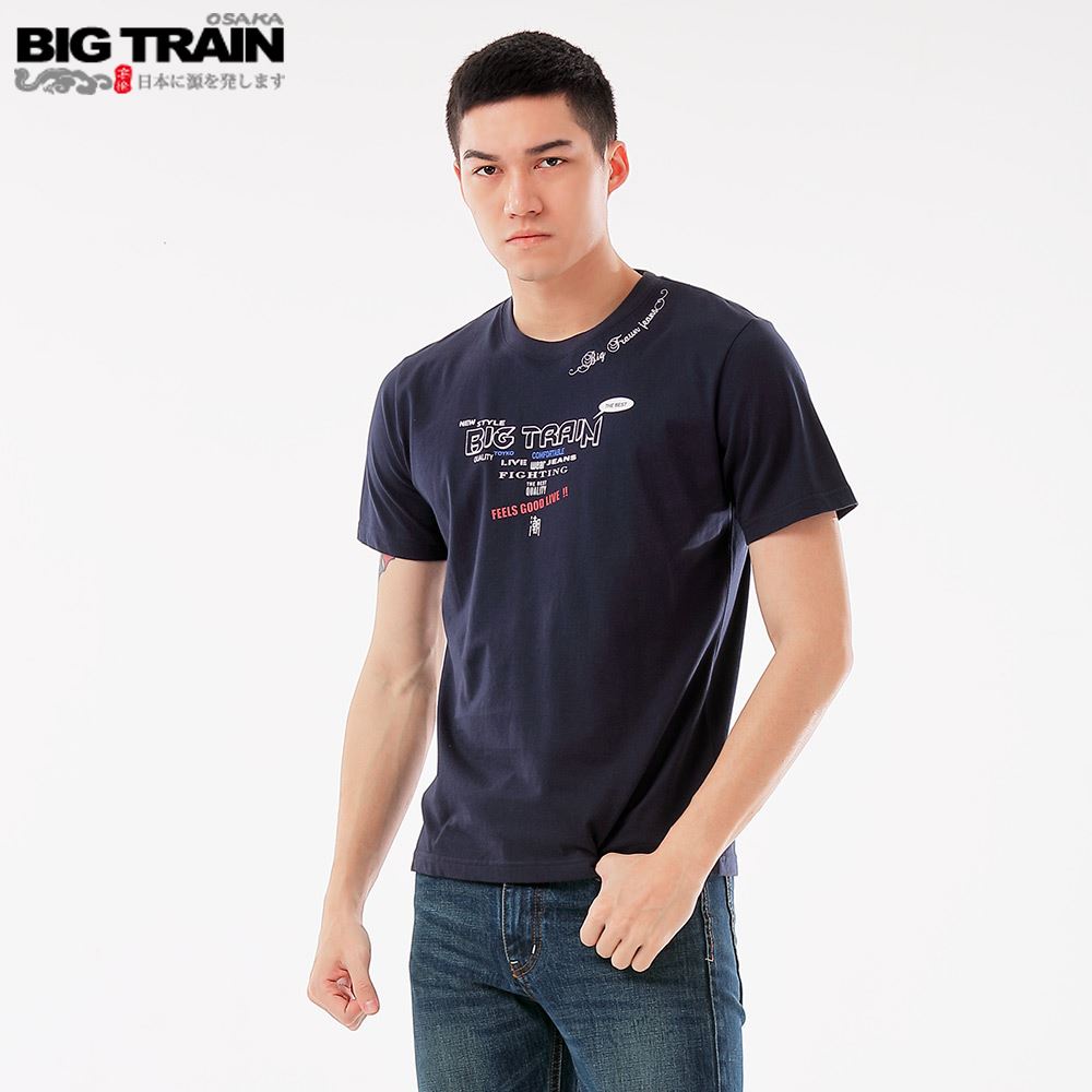 BIG TRAIN 潮人文字圓領短袖-深藍