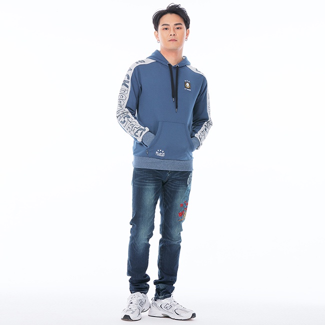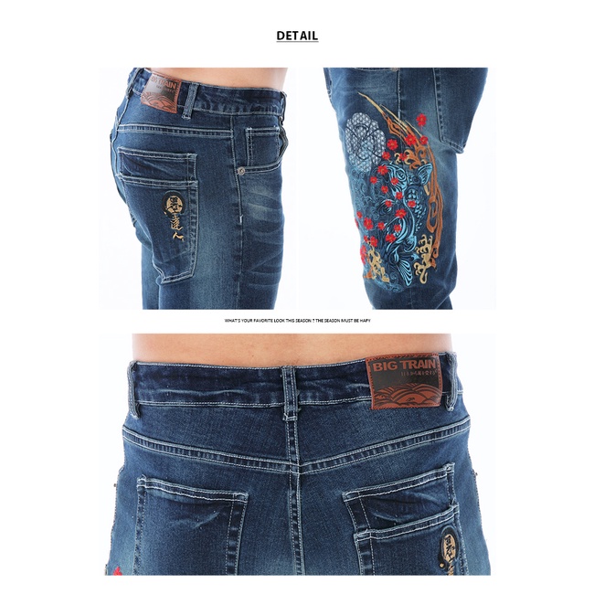 BIG TRAIN 鯉魚印繡彈性水洗小直筒-深藍ZM7024