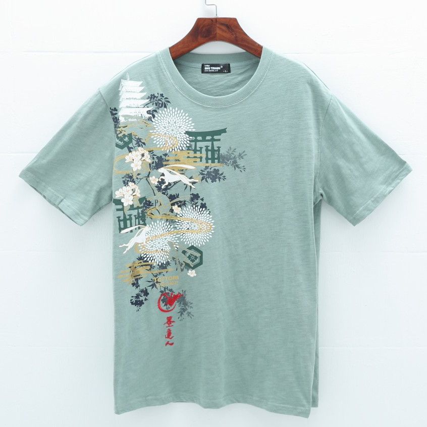 BIG TRAIN 白兔神社竹節棉修身男T 淺綠 Z80194