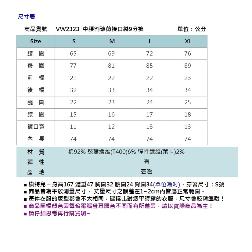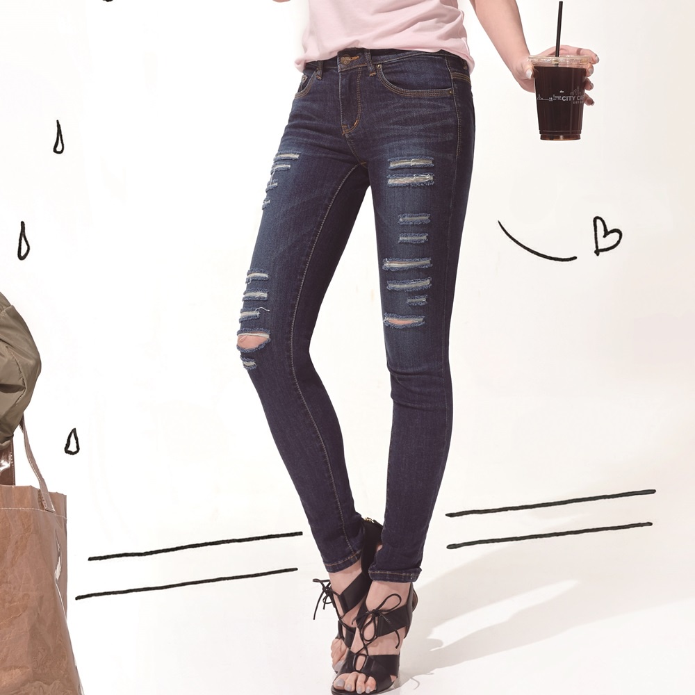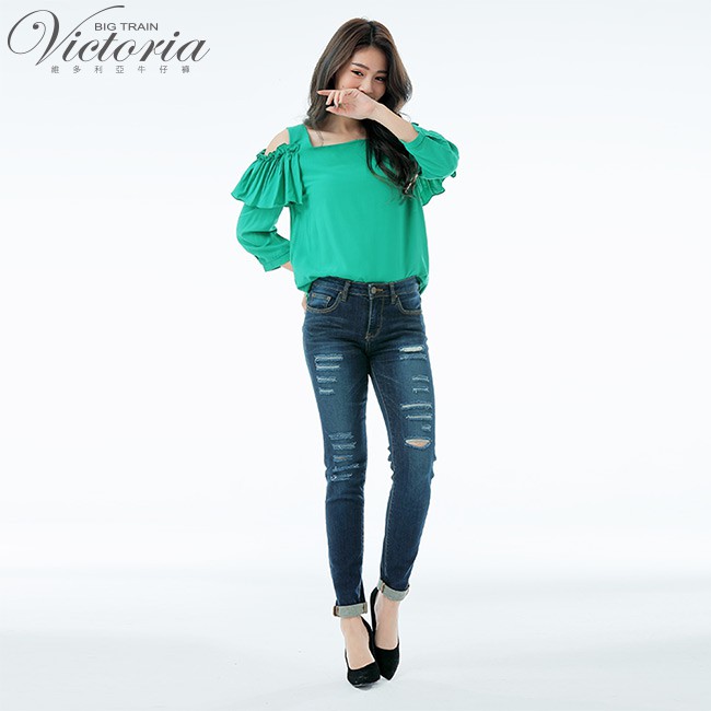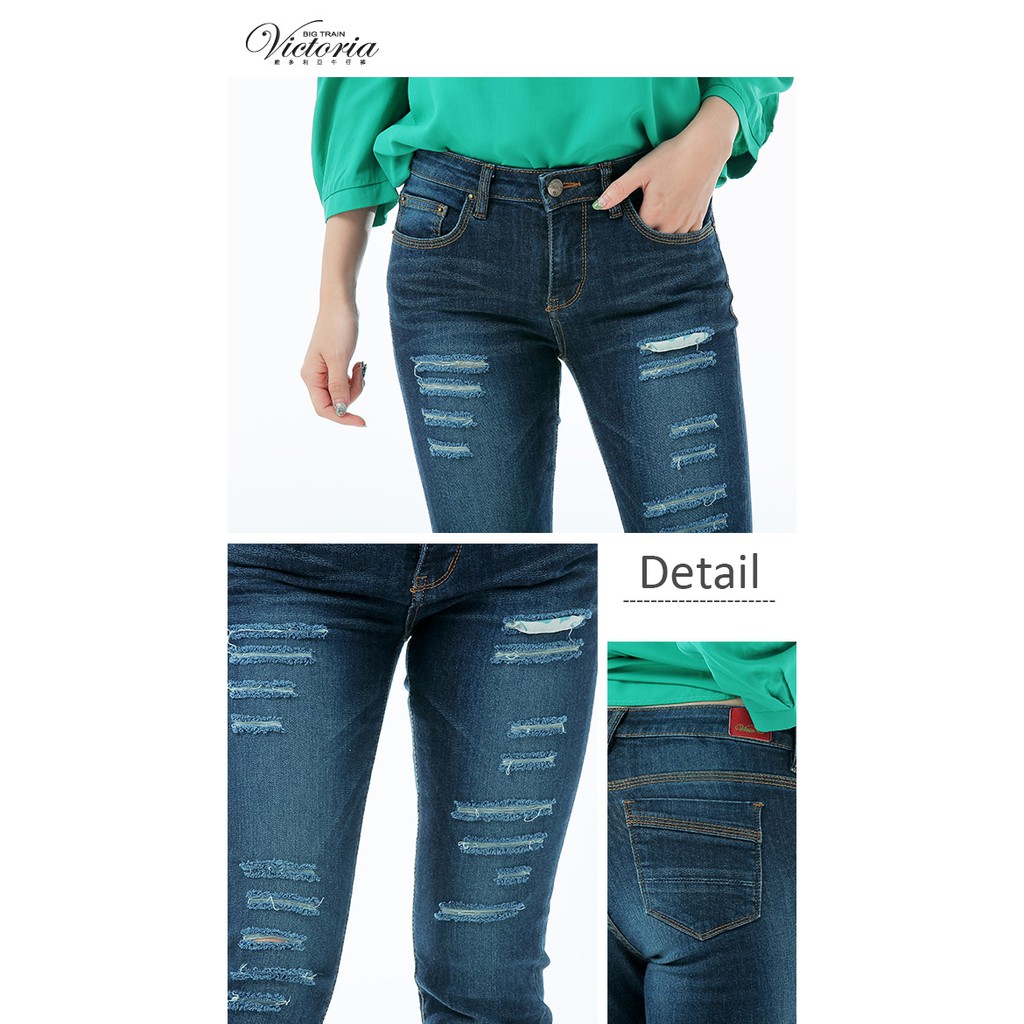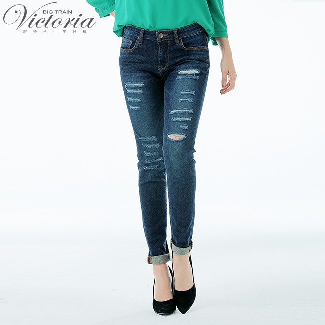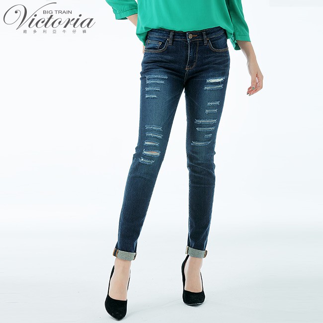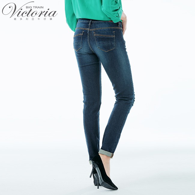 VICTORIA 中腰割破剪接口袋9分褲-深藍VW2323