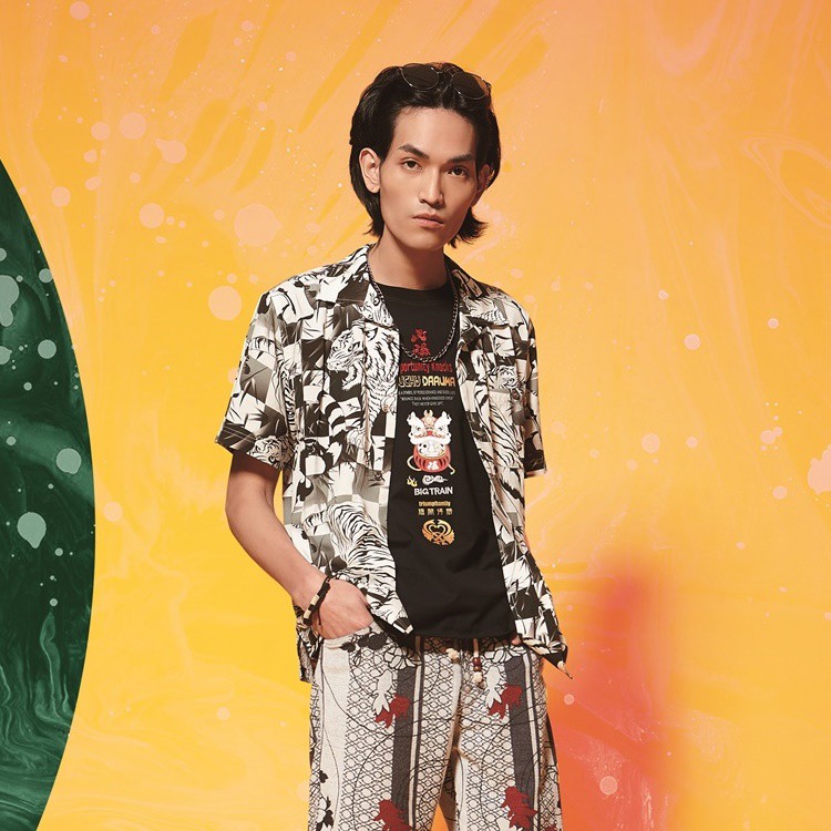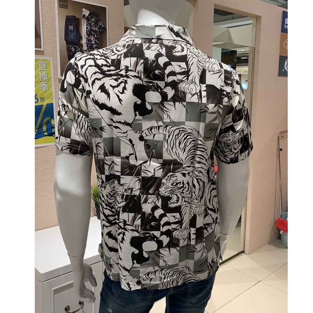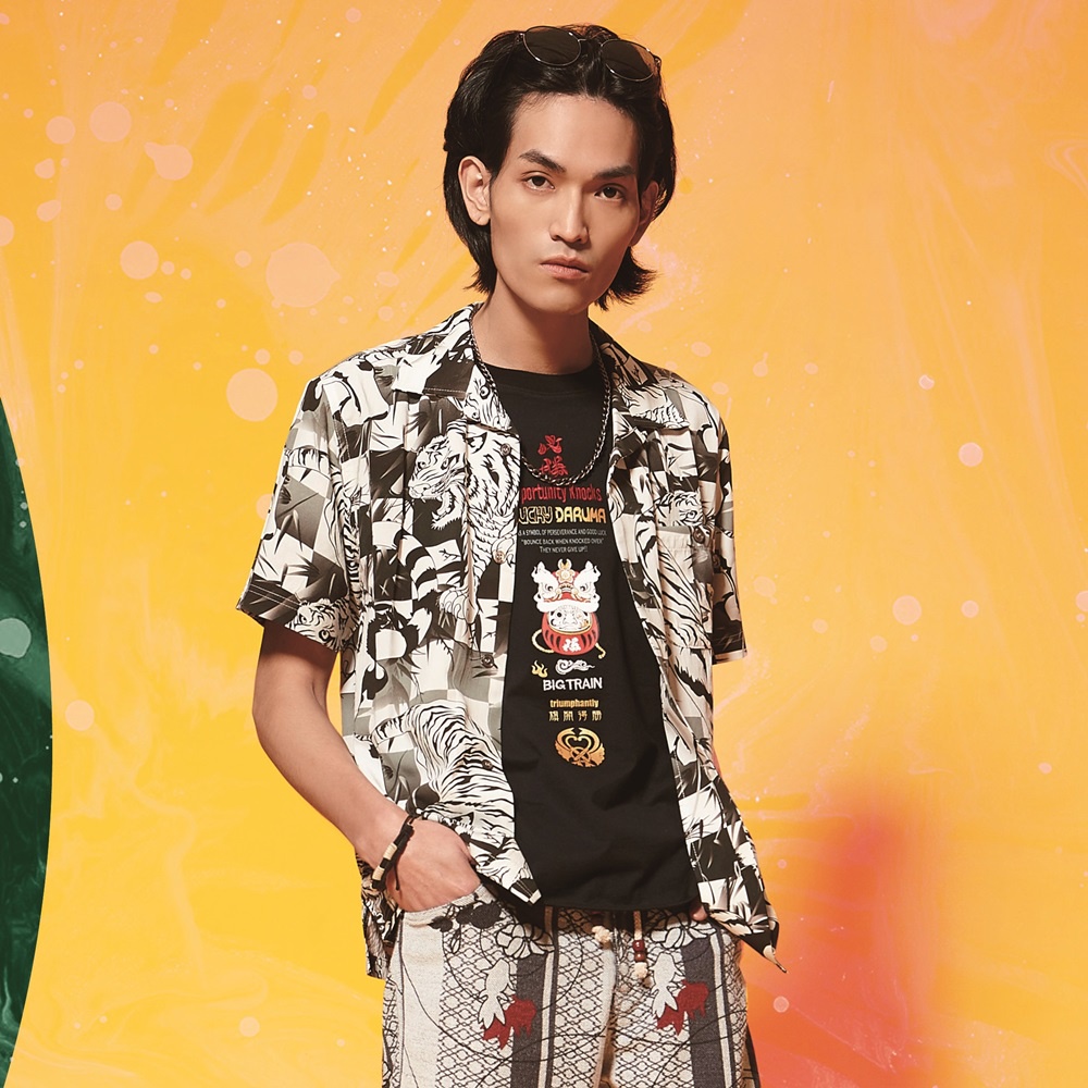 BIG TRAIN 港風大龍虎印花短袖襯衫 黑B70121