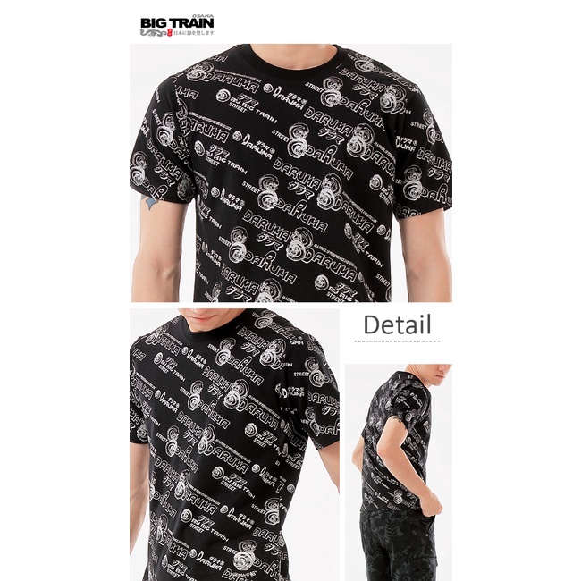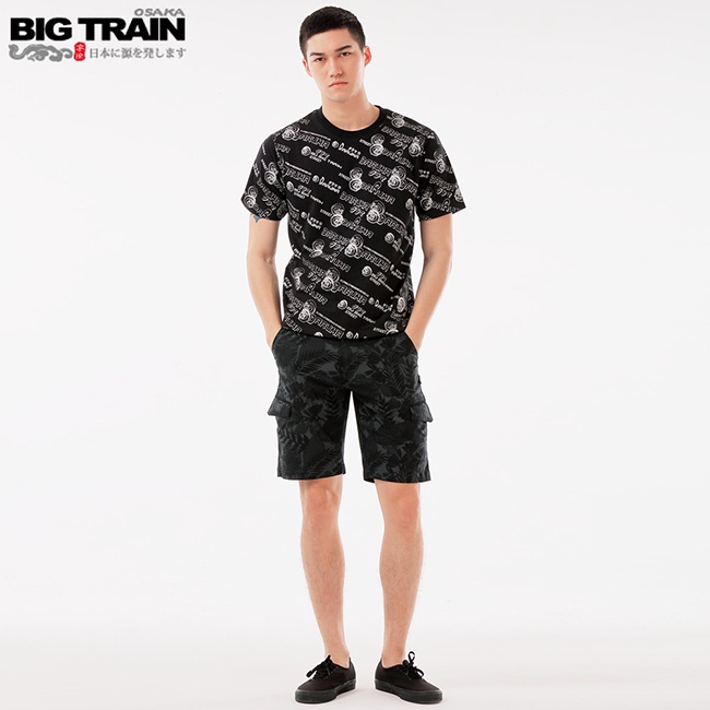BIG TRAIN 翻轉潮流滿版印花短袖T-黑B80691