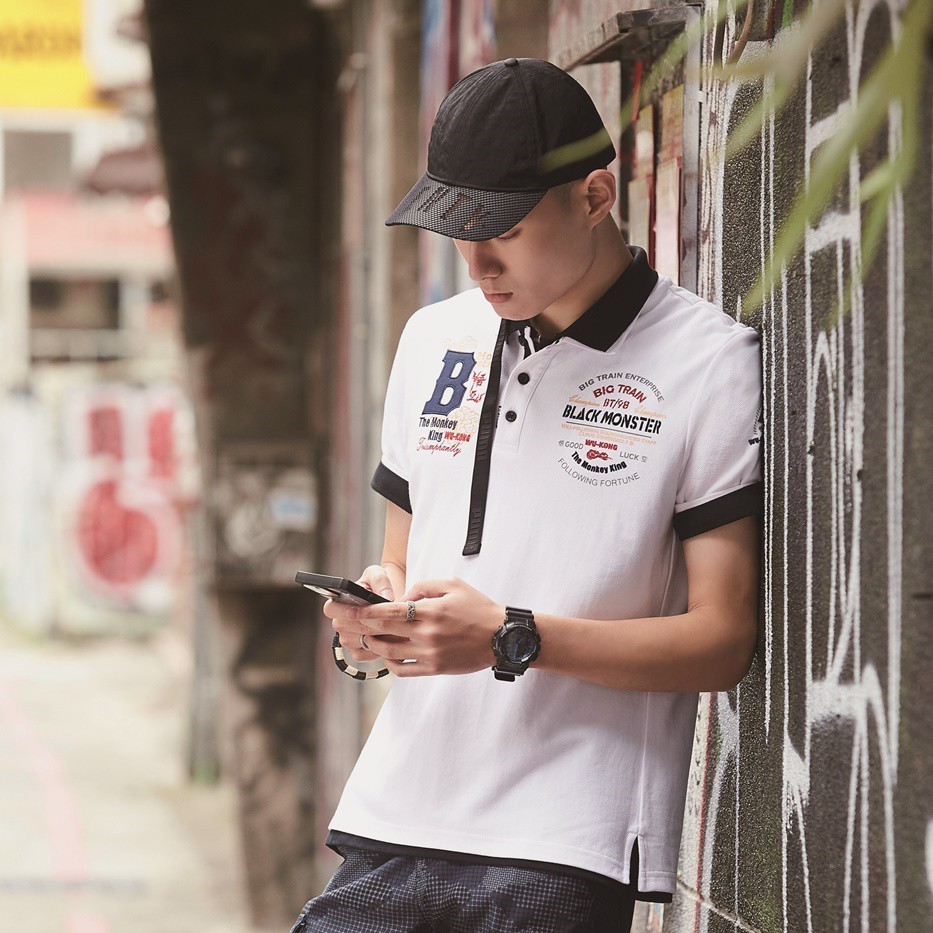 BIG TRAIN 繡字悟空吸濕排汗POLO衫 白B80757