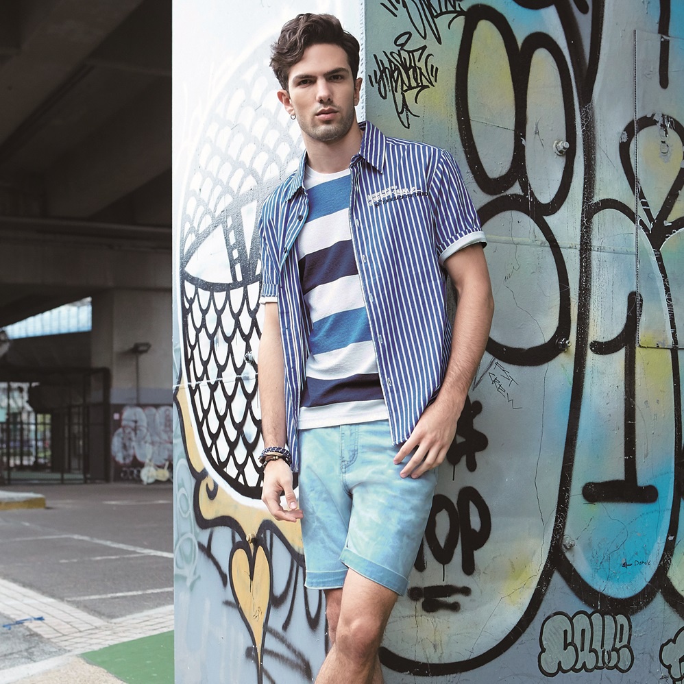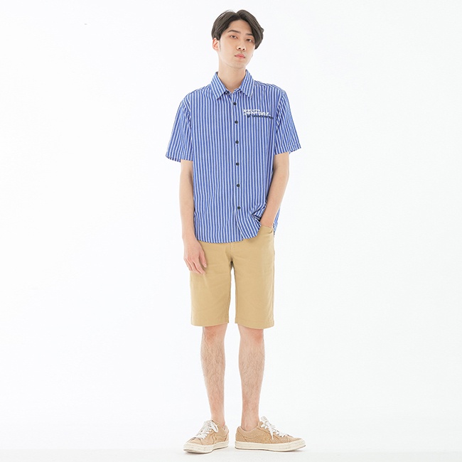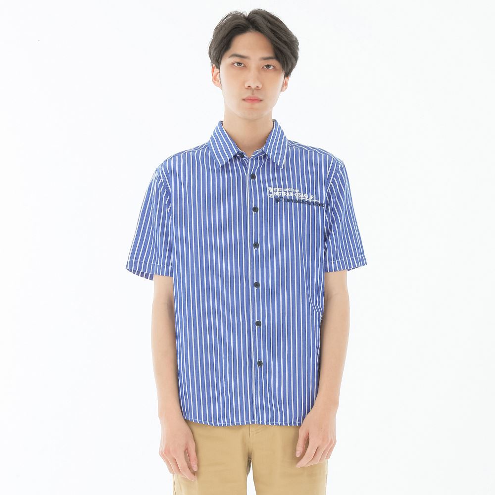 BIG TRAIN 文青風條文短袖襯衫-藍白條B70117