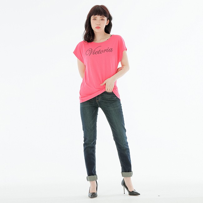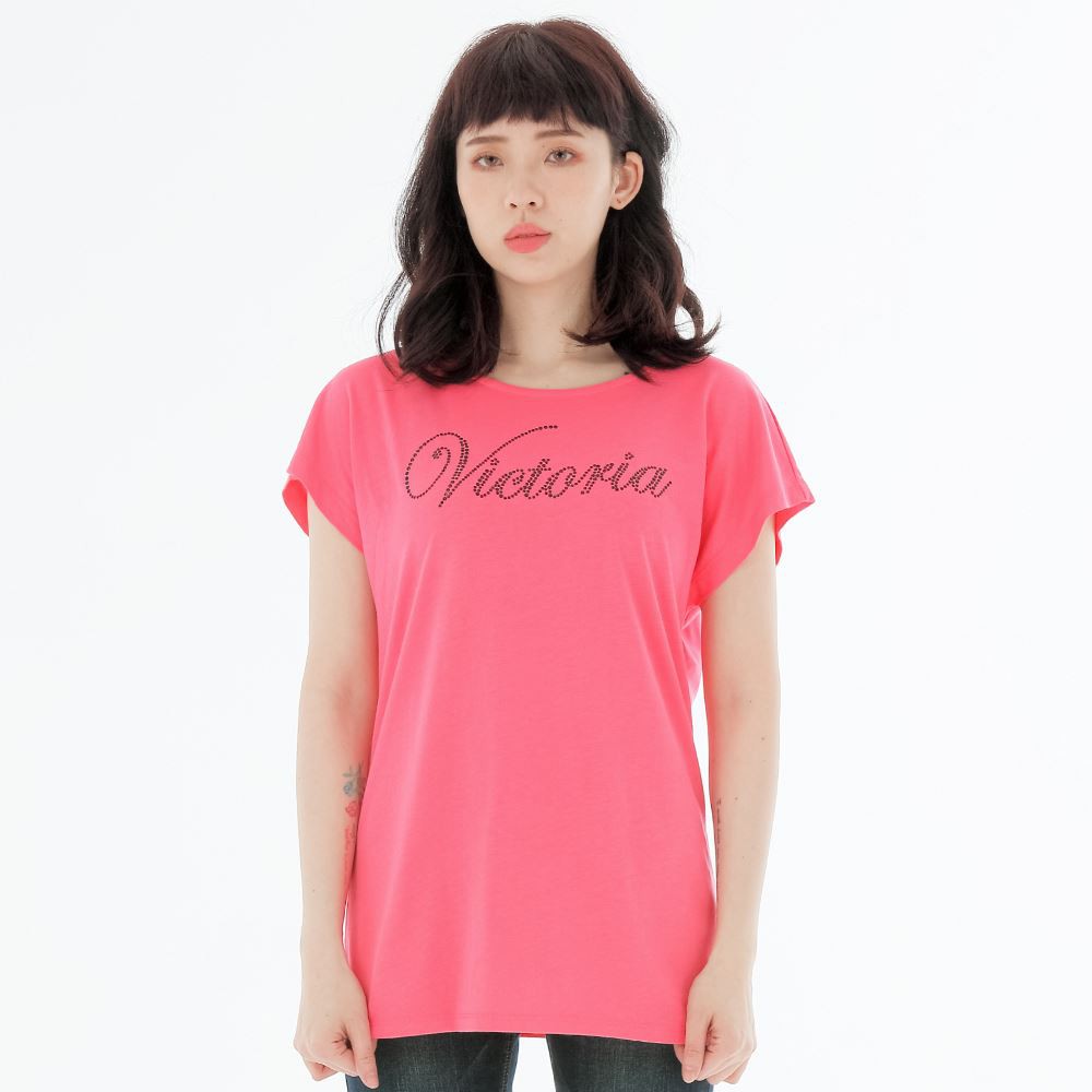 VICTORIA LOGO排字鋁片女上衣-粉桃紅
