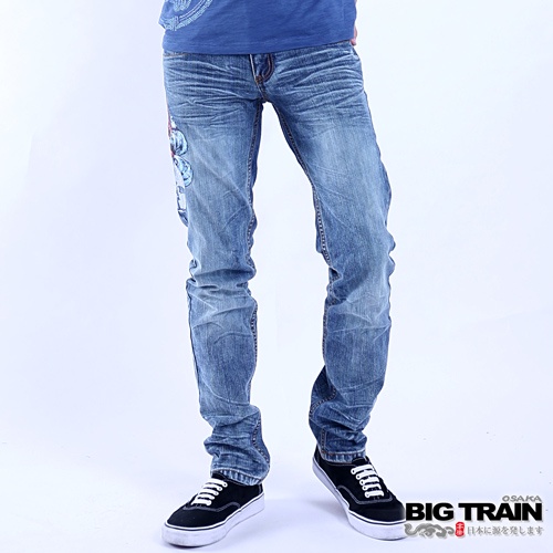 BIG TRAIN墨龍小直筒褲-中藍-ZM7004-76
