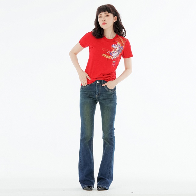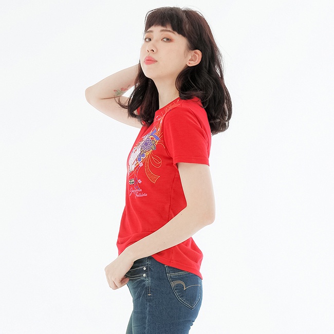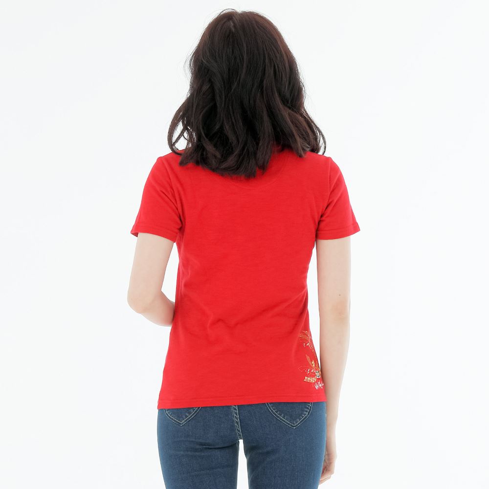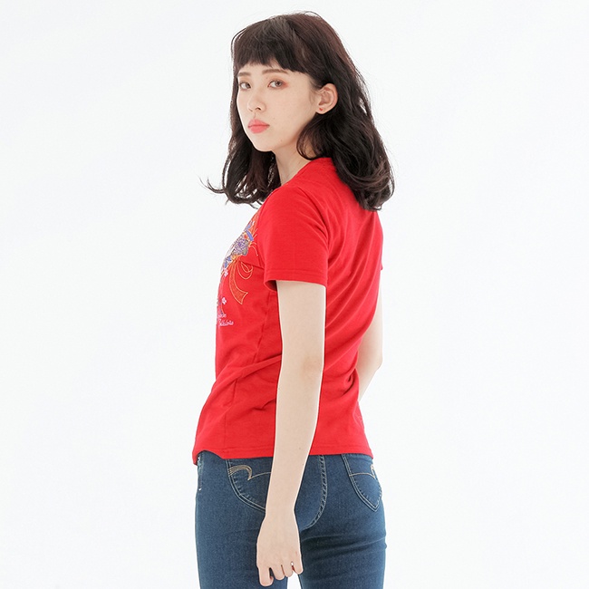 BIG TRAIN 和風花纏竹節棉修身女T-紅 B85289
