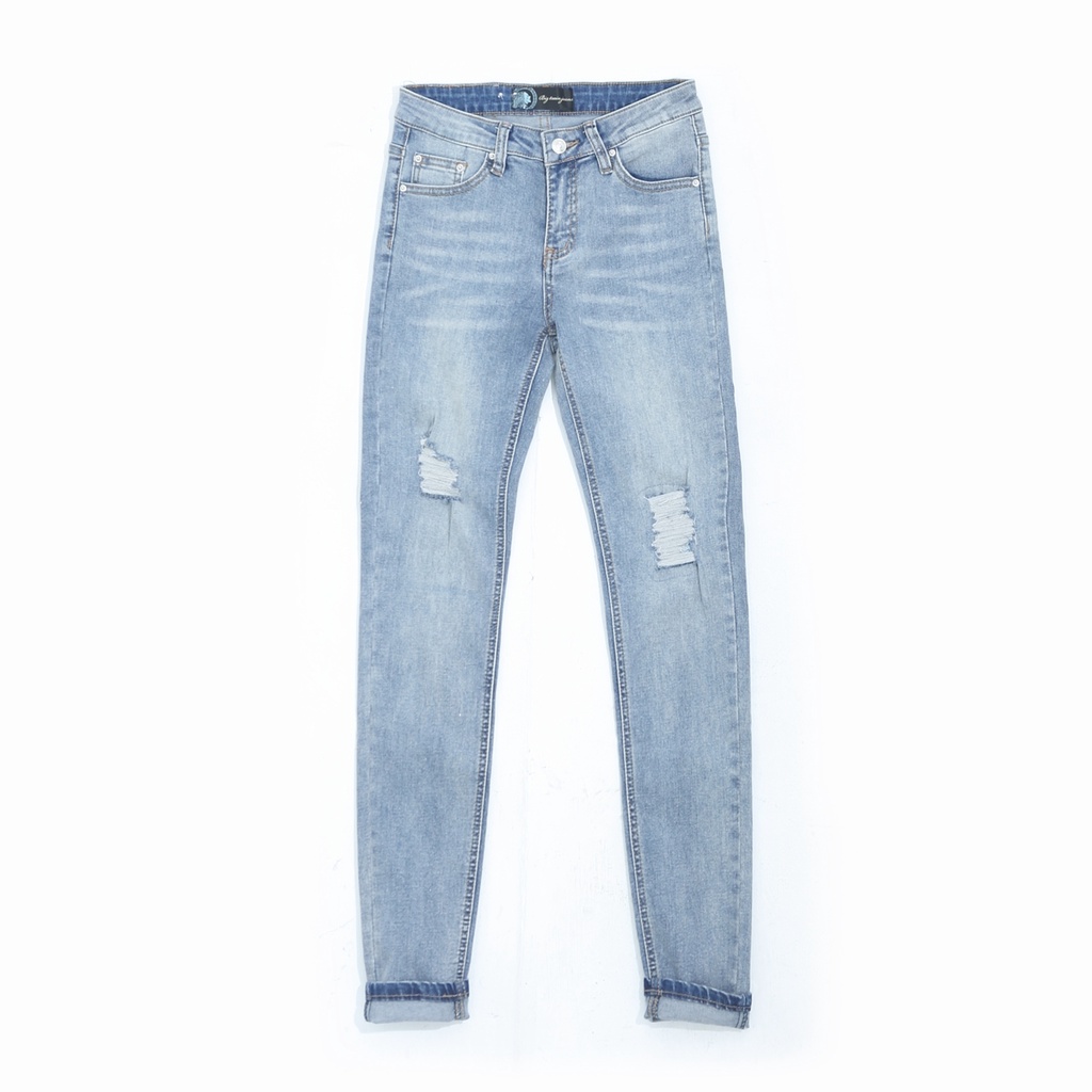 BIG TRAIN 中腰淺藍割破窄管褲-淺藍 ZW2004-73