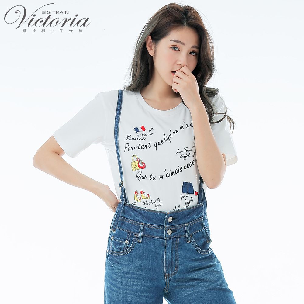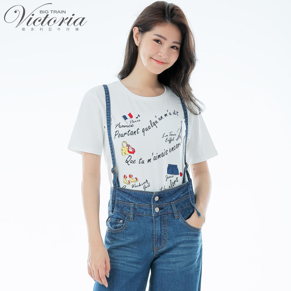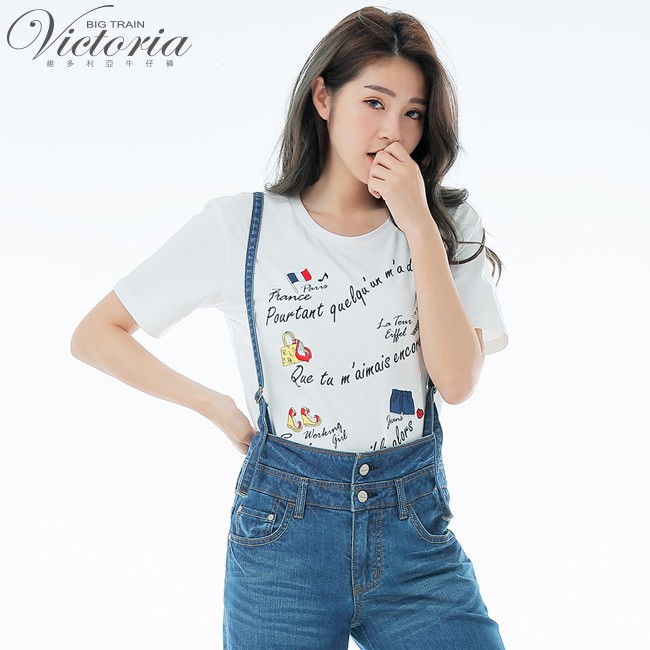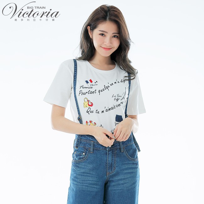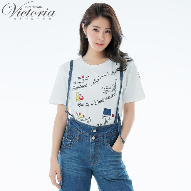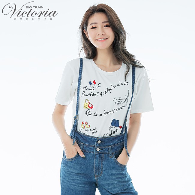 VICTORIA 巴黎圖文印繡基本短袖T-白V85473