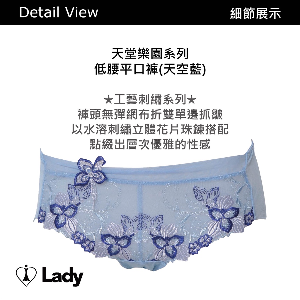 Lady天堂樂園系列《成套》內衣+平口褲 (天空藍)