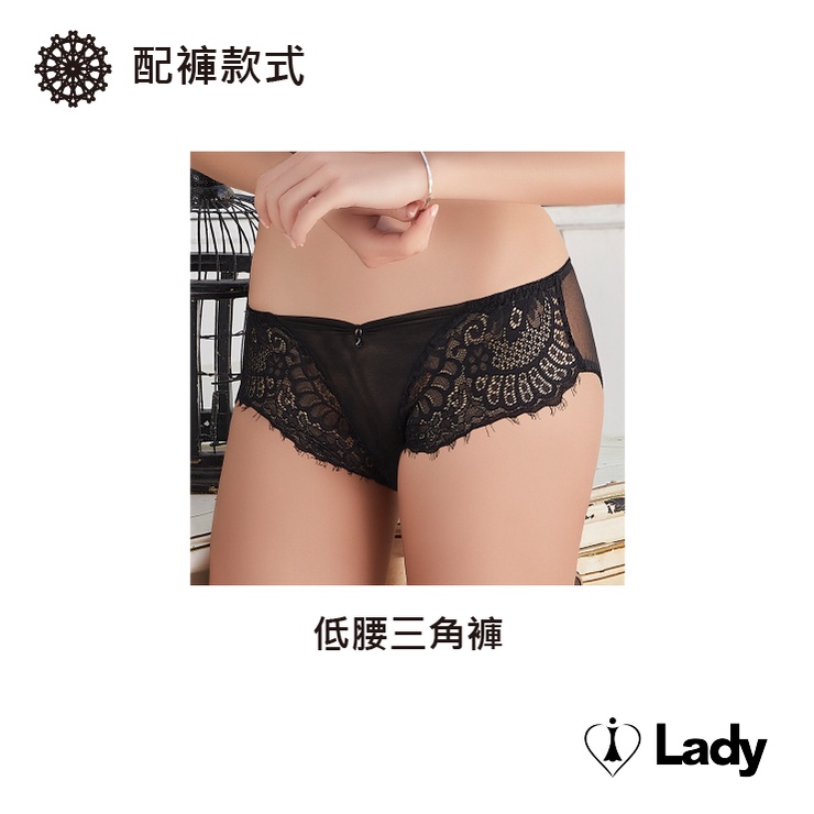 Lady 輕紗漫語系列 C-F罩 無鋼圈 蕾絲 內衣 (柔情黑) │ 3/4罩杯 涼感 彈性蕾絲 環保材質