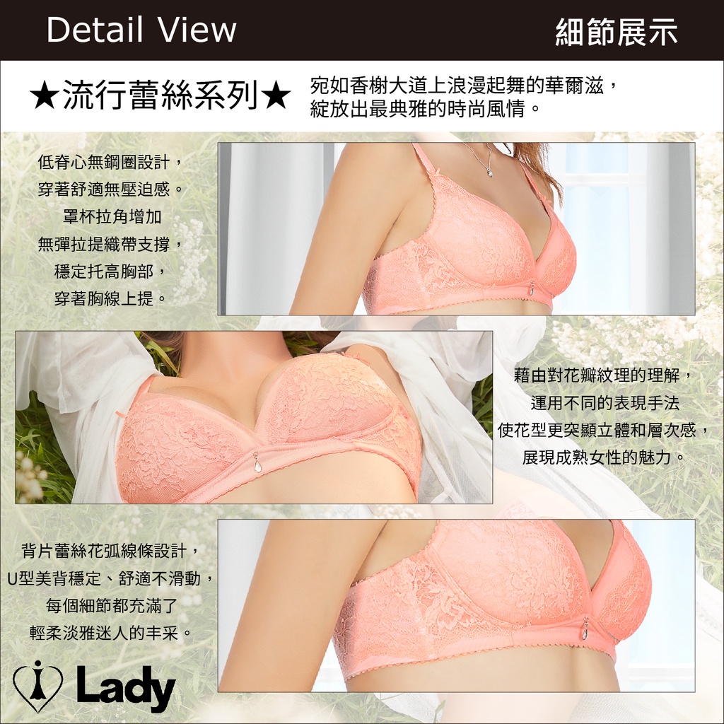 Lady 香榭華爾滋系列 《成套》無鋼圈內衣80-85 + 隨機配褲 (圓舞綠)