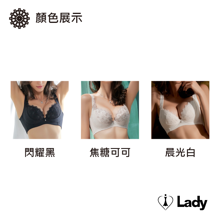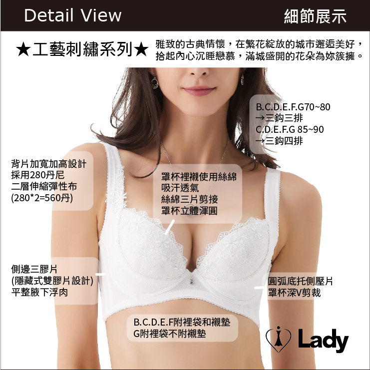 Lady 花履奇緣系列 B-F罩 機能 調整型 內衣 (晨光白) │ 刺繡蕾絲 集中