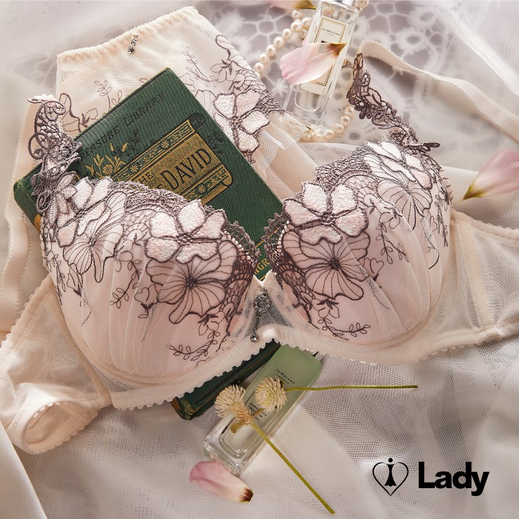 Lady微醺夢境系列 B-F罩 法式 刺繡 蕾絲 內衣 (海貝色)