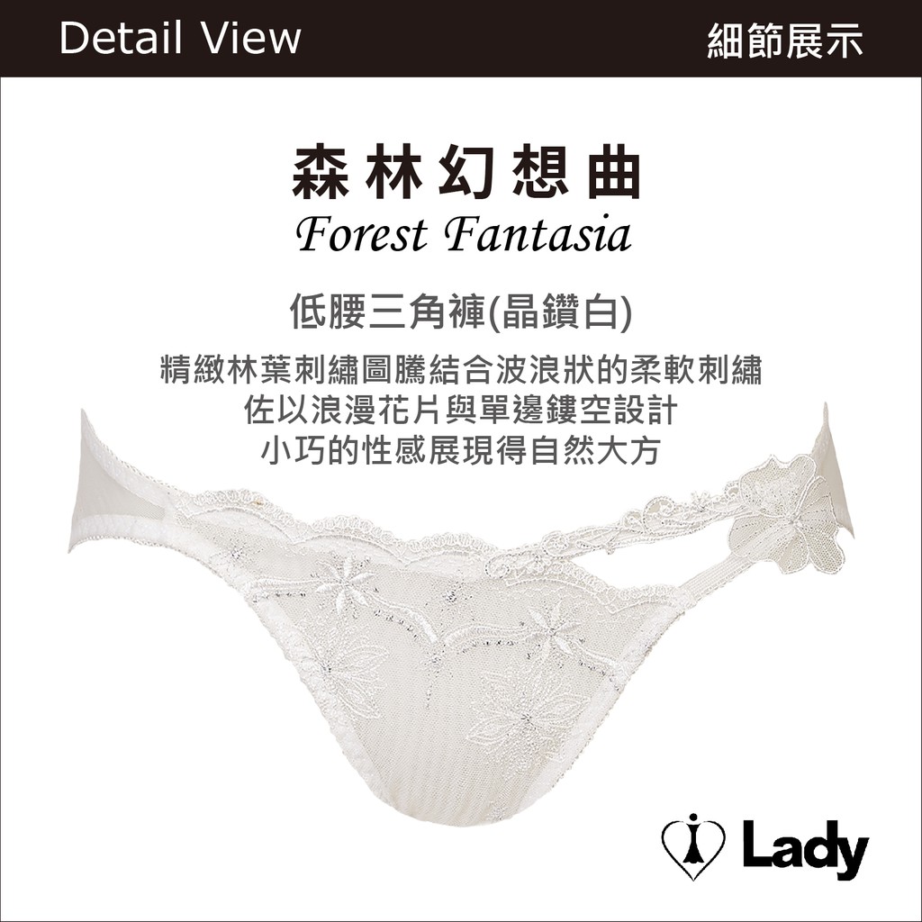 Lady 森林幻想曲系列 刺繡 蕾絲 低腰 三角褲 (晶鑽白) │ 透感網布 M-L