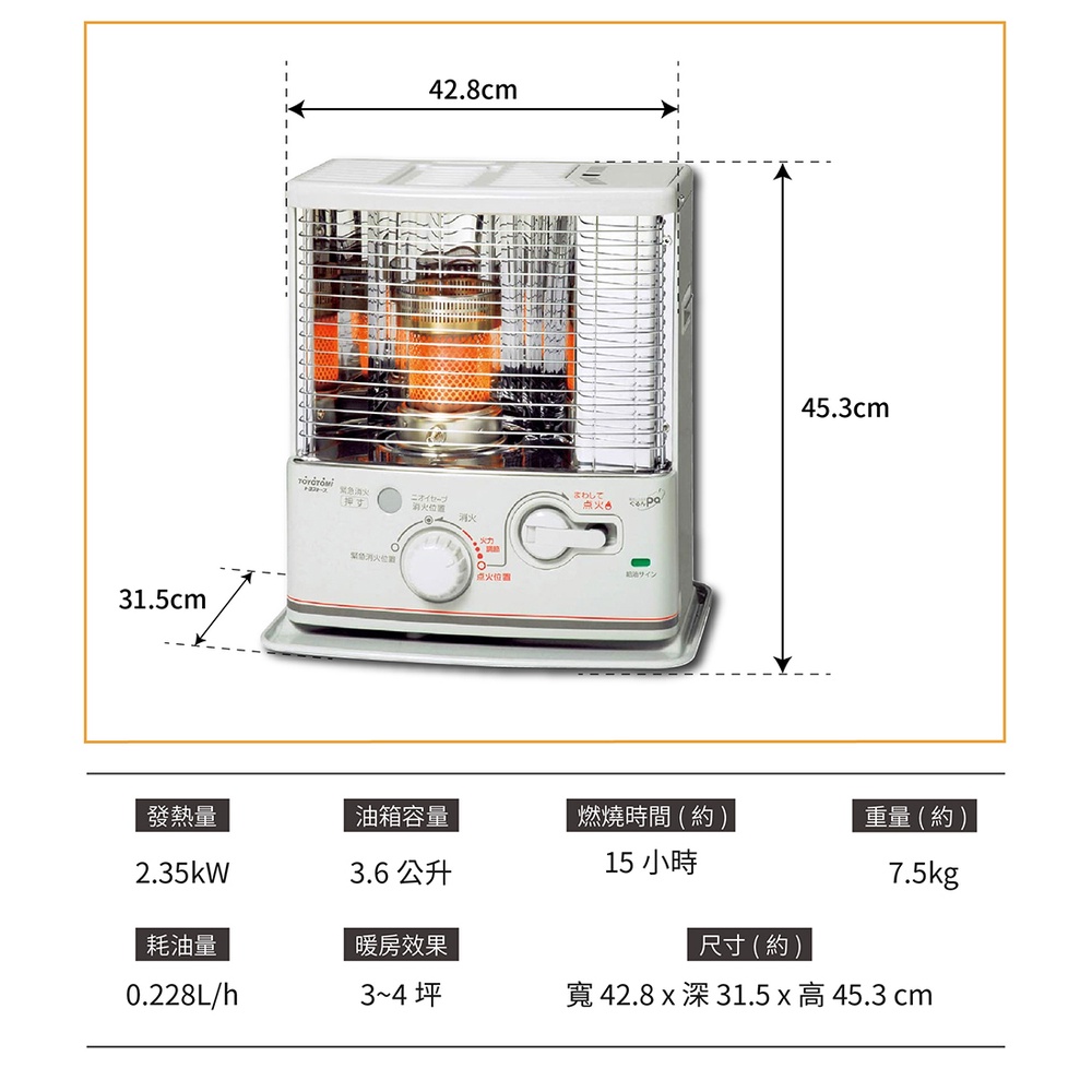 TOYOTOMI RS-G240 日本製 電子點火煤油暖爐 2.35KW煤油暖爐 3.6L 手搖式點火 免插電