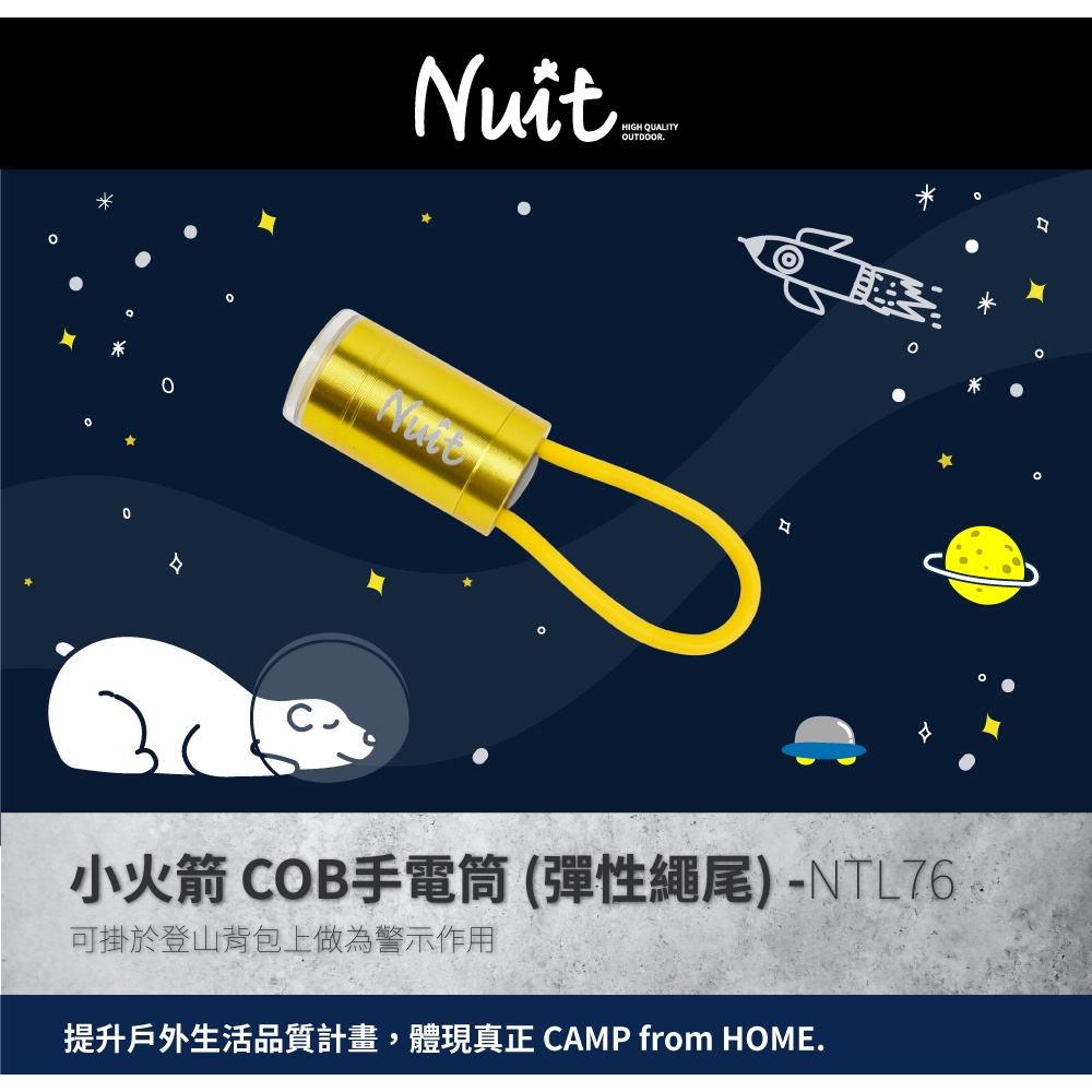 努特NUIT NTL76 小火箭 COB手電筒 (彈性繩尾) 迷你LED 登山扣燈 閃爍警示 背包燈 露營 夜跑 帳篷燈
