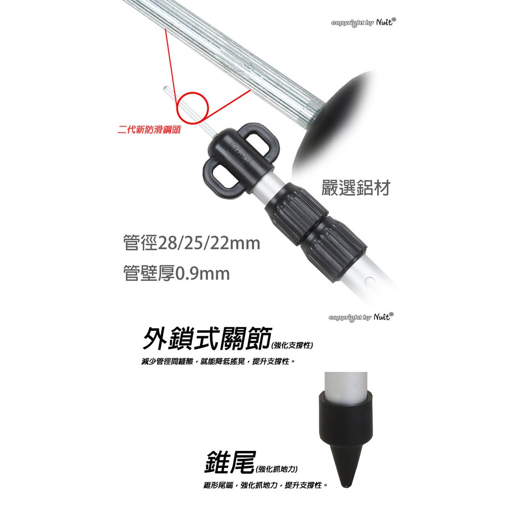 【努特NUIT】 NTA27 鋁合金加粗三節伸縮營柱 彈釦 外鎖 鋁合金伸縮營柱 鋁合金伸縮鋁柱