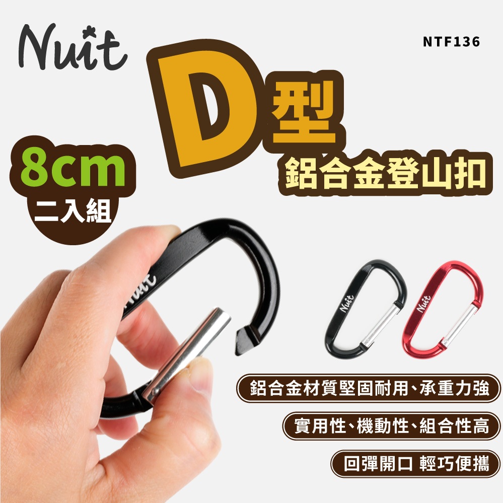 【努特NUIT】 NTF136 8號 D型鋁合金登山扣 8cm 2入組 快扣環D型環鋁合金勾環 D型扣 快扣鑰匙圈