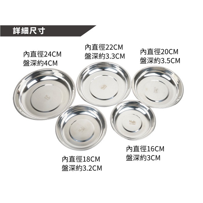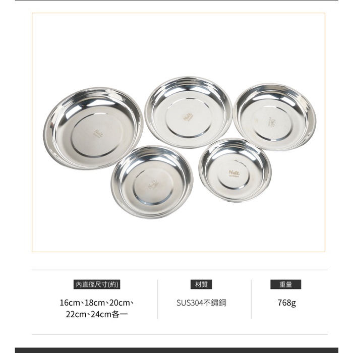 【努特NUIT】 NTF178 5入不鏽鋼盤組 附收納袋 16CM、18CM、20CM、22CM、24CM SUS30