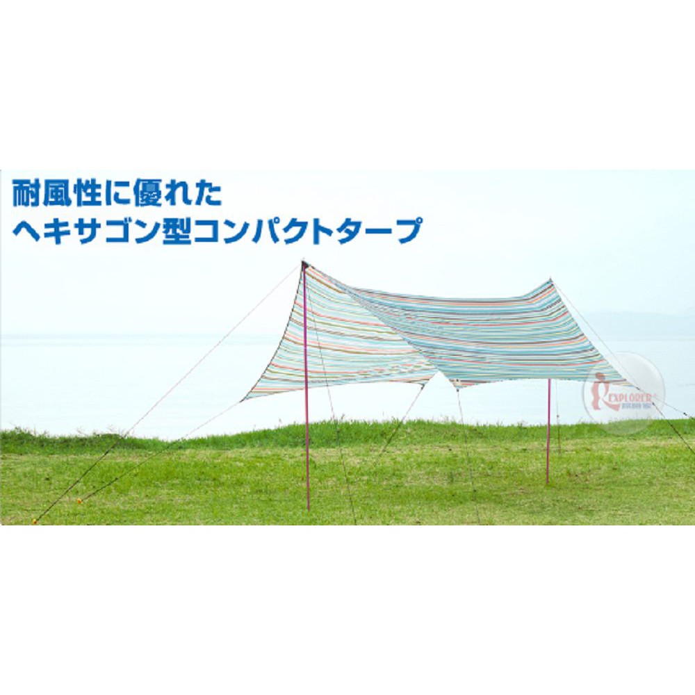 福利品出清 NO.71806516 日本LOGOS 藍條紋天幕帳 340x295cm蝶式炊事帳客廳帳遮陽帳